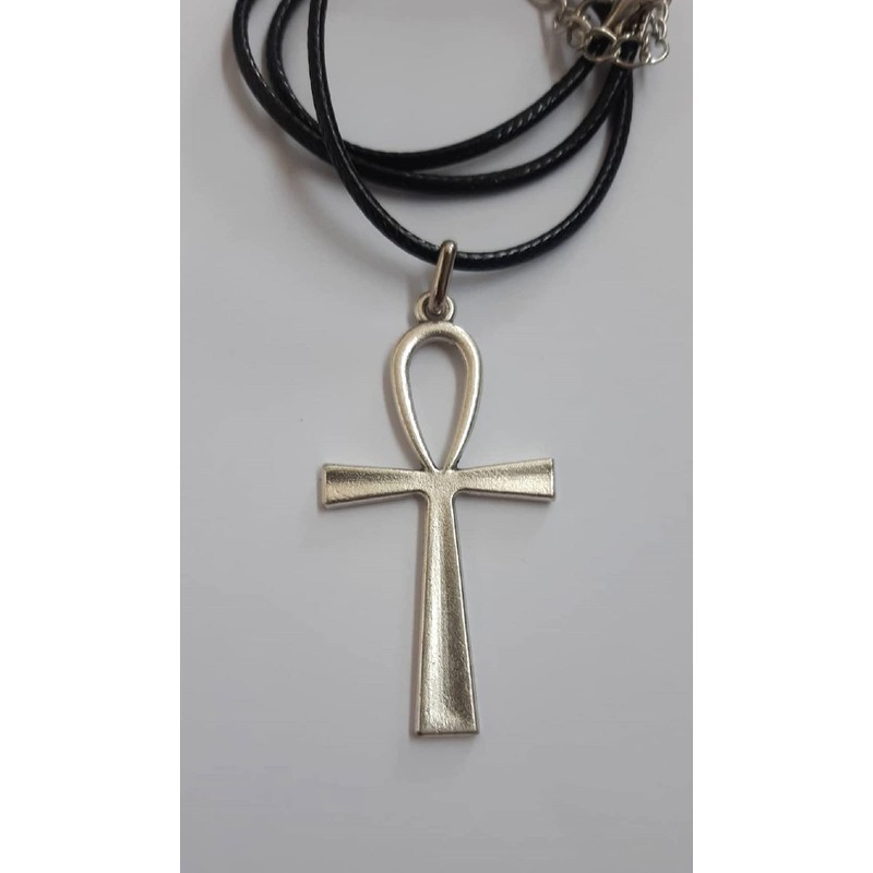 Egyptian Ankh Pendant with necklace - Silver plated metal - Craft Jewel Key of life H 2 in