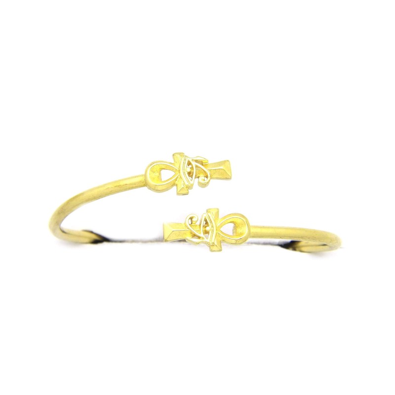 Egyptian Pyramid, Queen Nefertiti, Fist Piece 100% Solid Brass Cuff Bangle Bracelet (Ankh 2 / Medium)