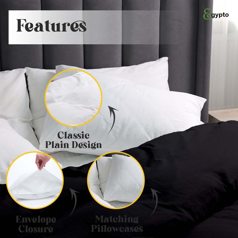 EGYPTO Polycotton Black Single Duvet Cover Set - Soft, Breathable Anti-Allergic Bedding Set - with Comfortable Pillow Case for Bed (Single, Black)