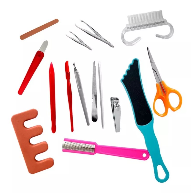 Incluye 18 piezas como, cortaúñas, empujador de cutículas, lima de uñas, tenedor para piel muerta, pinzas para cejas, tijeras para cejas, aguja para el acné, ganzúas, etc. Le resultará muy útil para el cuidado diario de las manos y pies.