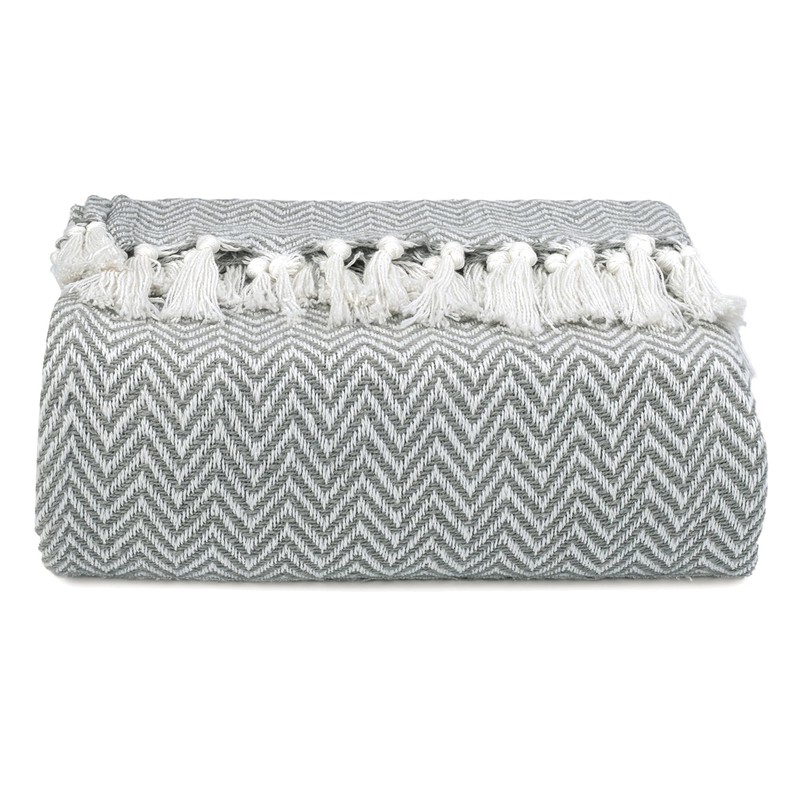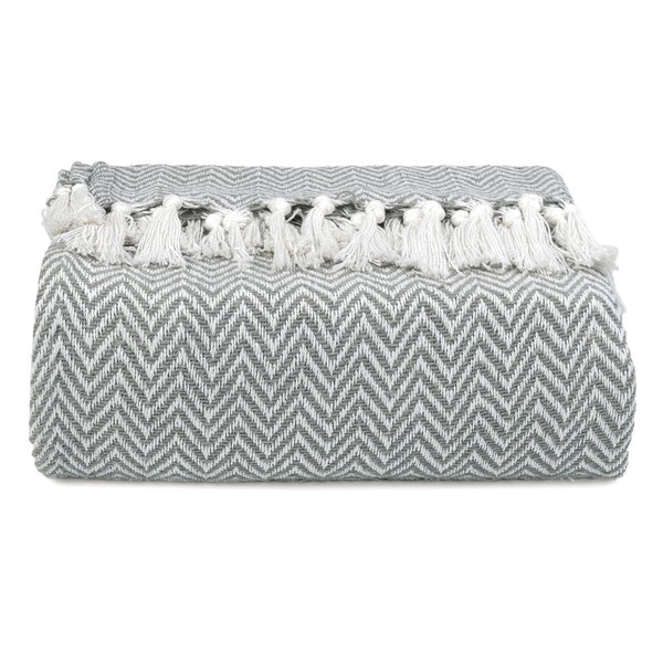 EHC Chevron Throw Blanket, Handwoven Cotton Throws for Sofas Bed Sofa Settee Couch Reversible Bed Cover Over Bedspread, Single 127 x 152 cm, Grey