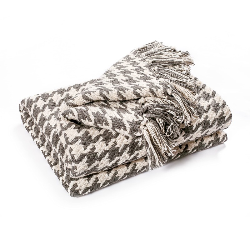EHC Cotton Houndstooth Throw Blanket For Bed Sofa Couch Arm chair Soft Woven Cover, 125 x 150 cm