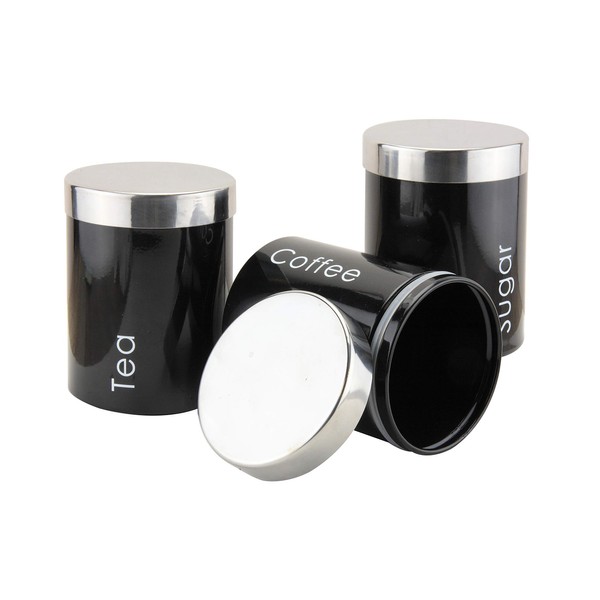EHC Set of 3 Airtight Tea Sugar and Coffee Storage Canister Jars, Black