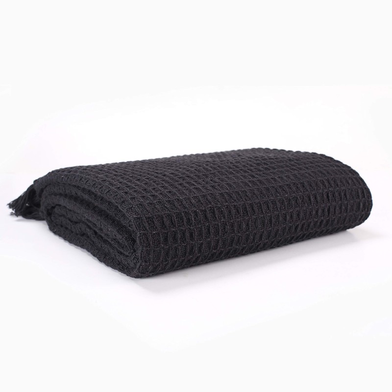 EHC Waffle Throws for Sofa Armchair Blanket Single Bed Cover, 127 X 152cm - Black