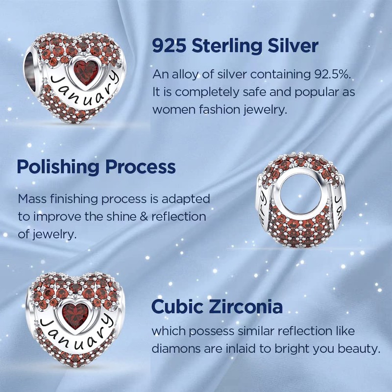 - Material&size:January Birthstone Garnet Symbolizes Loyal.Our charms are made of 925 sterling silver,its consists of 92.5% silver and 7.5% other metals (such as copper).