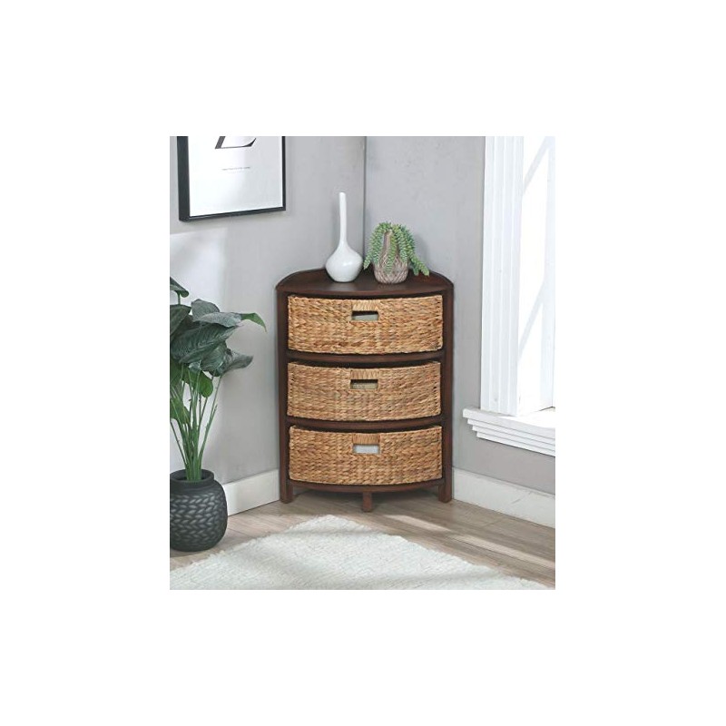eHemco 3 Tier X-Side Corner Table/Cabinet Storage with 3 Baskets (Walnut)
