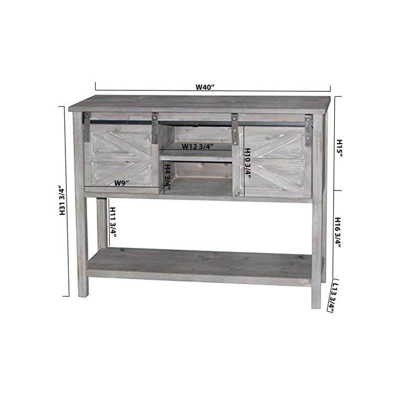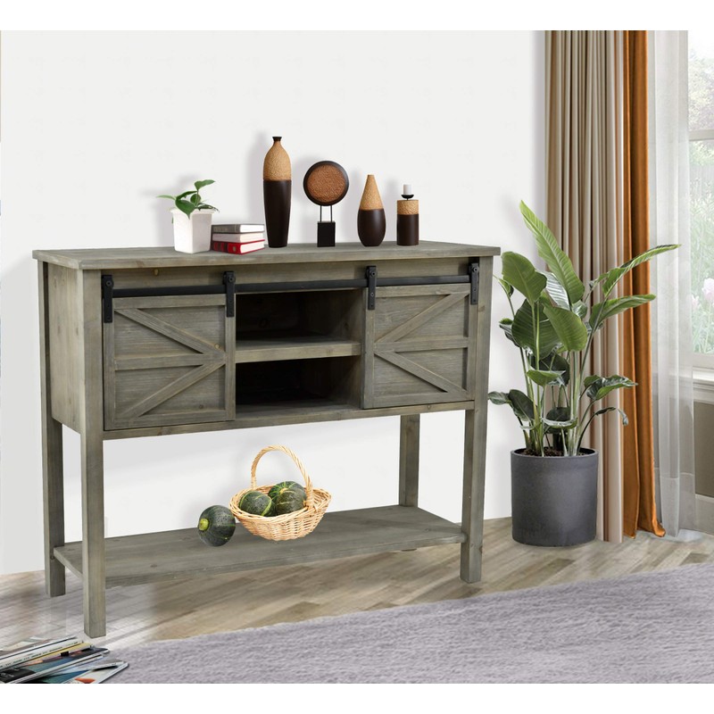 eHemco Farmhouse Console Table with Sliding Barn Doors and Bottom Shelf, Grey