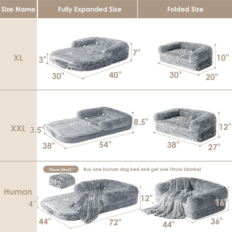 - COMFORTABLE AND CONVENIENT: Our human dog bed for adult uses premium faux fur plush as the bed cover fabric, which is soft, warm, breathable, and durable. In addition, when you buy it (human dog bed ONLY), we will also present you a blanket of the same color and material, so that you can lie on it more comfortably.