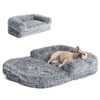 EHEYCIGA Foldable XL Dog Bed, Faux Fur Fluffy Dog Bed for Extra Large Dogs, Orthopedic Calming Memory Foam XL Dog Couch Bed, Washable Soft Warm Dog Sofa Bed with Non-Slip Bottom, Grey, 40"x30"x7"