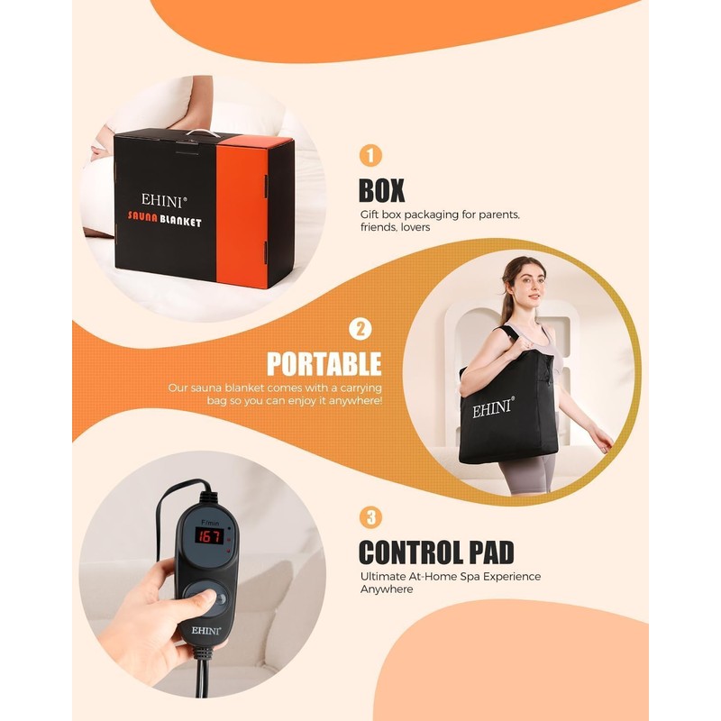 - Rejuvenate Skin for a Youthful Glow: In just 30 minutes, the EHINI Infrared Sauna Blanket stimulates skin cell regeneration, enhancing skin elasticity and health. It helps revitalize your complexion, restoring a youthful, radiant glow.