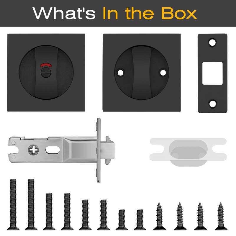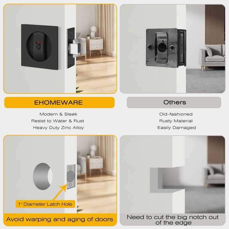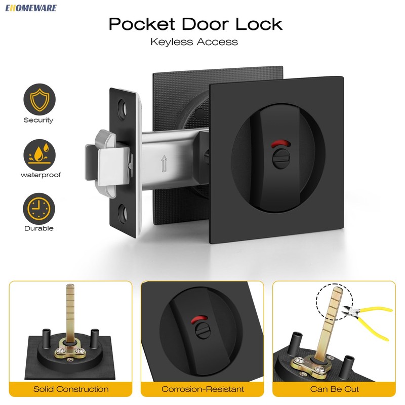 - Upgrade Quality: Crafted from high-quality zinc alloy, this sturdy pocket door lock is waterproof and rust-free; Its scratch-resistant finish stays flawless even in homes with active pets; Moreover, the locking mechanism operates smoothly and won't getting stuck; Once installed, its near-silent operation allows you to enjoy your moments without any disturbance