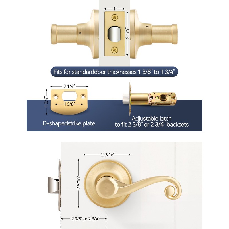 - Unique Design: This door handle set is in a satin brass finish; Understated yet elegant, it will fit in well with the modern style room door; The unique wavy handle is very attractive, which not only has a comfortable touch, but also shows off your taste