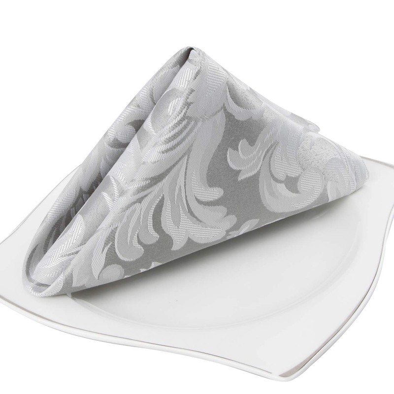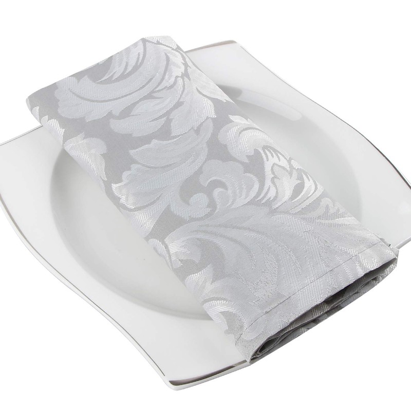 EHouseHome Damask Jacquard Cloth Napkins Waterproof Spillproof Polyester Fabric Napkins Silver Grey, Set of 12, 17 x 17 Inch