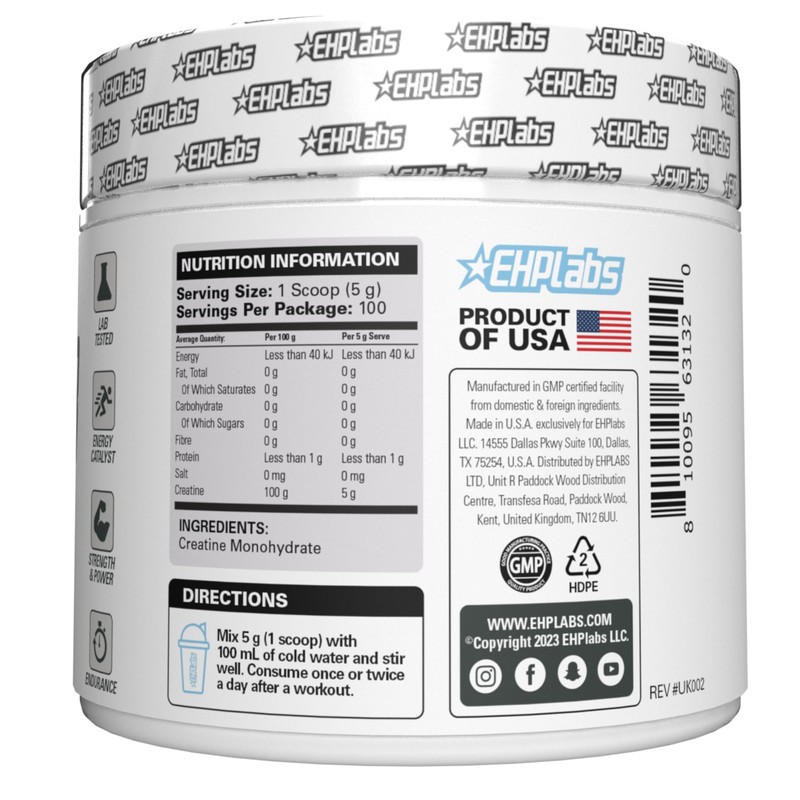 EHP LABS EHP Labs CREA-8 Creatine Monohydrate Powder - Creatine Powder for Building Lean Muscle Mass, Improves Strength & Power, Supports Brain Health - 100 Servings (500g)