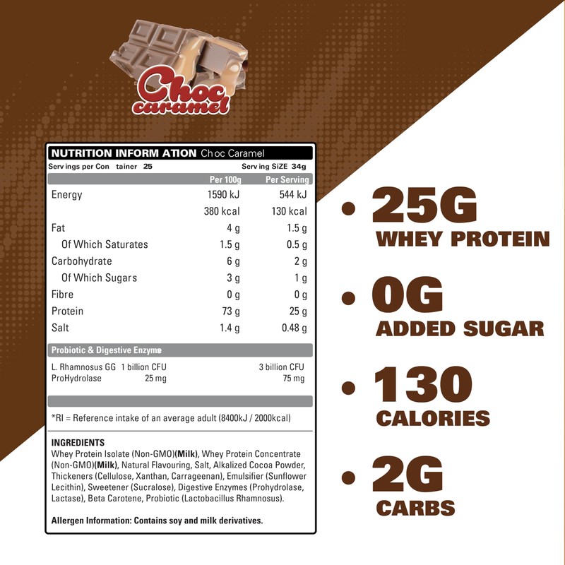 EHP Labs OxyWhey Lean Whey Protein Powder - 25g of 100% Pure, Lean, Non-GMO Whey Protein Blend, Post Workout Fitness & Nutritional Shakes, Smoothies, Baking & Cooking - 27 Serves (Choc Caramel)