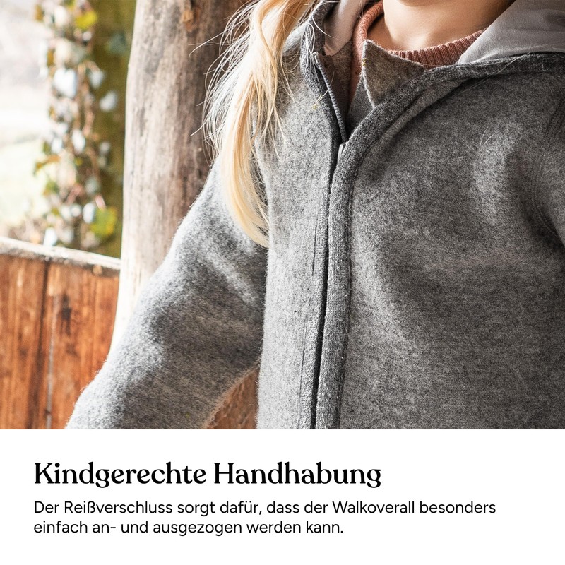 - Hygienic and practical – the fulled wool bodysuit is naturally water- and dirt-repellent – perfect for children. It is durable, lightweight, comfortable and highly flexible. Includes: Hood and hand protectors, foldable.
