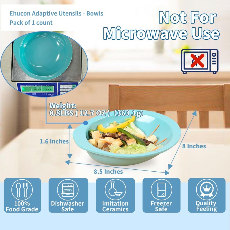 Ehucon Adaptive Utensils Bowl with Extra Wall, Non-Slip and Spill-Proof Melamine Bowl for Dementia, Stroke, Tremors, Self-Feeding Dinnerware for Elderly/Parkinsons/Disabled
