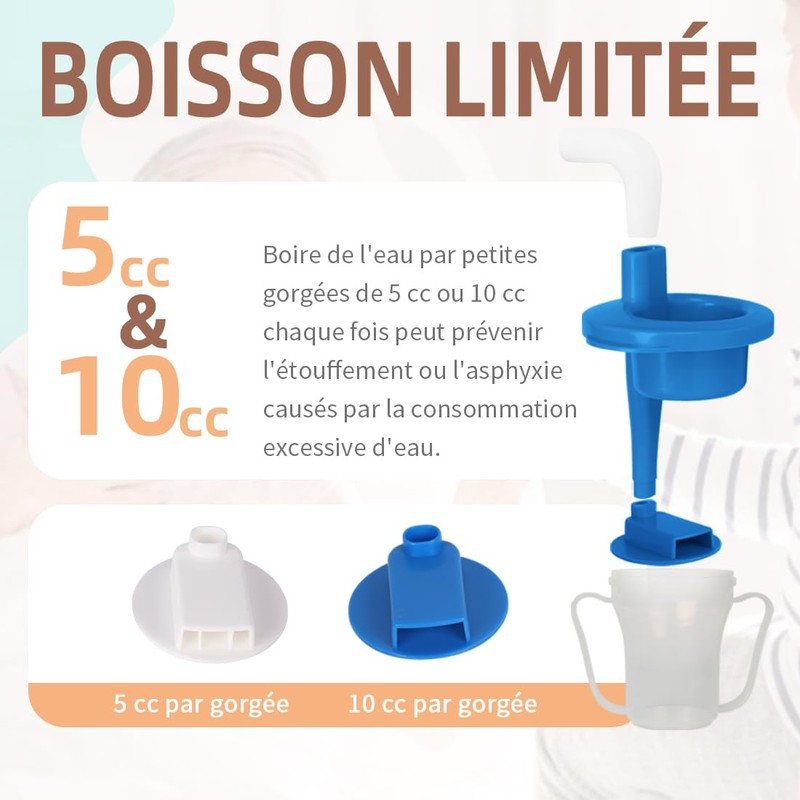 - Dieser Dysphagie-Becher unterstützt keine Verdickungsmittel. Dies ist kein Trinkbecher. Nur für Flüssigkeiten geeignet. Sie müssen die Flüssigkeit nicht aus dem Becher für Dysphagie saugen, sondern heben Sie einfach die Tasse an und die Flüssigkeit kann in den Schluck und die Tube zu Ihrem Mund transportiert werden.