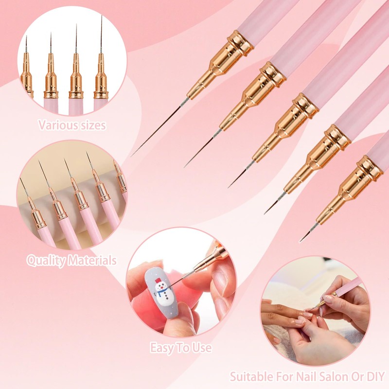 Ehuixinsheng 5Pcs Nail Art Liner Brushes,Fine Thin Nail Art Brush Painting Art Design Dotting Tools Set For Gel Nails Long Lines,Thin Details,Fine Drawing Sizes 7/9/11/25/25mm(Pink)