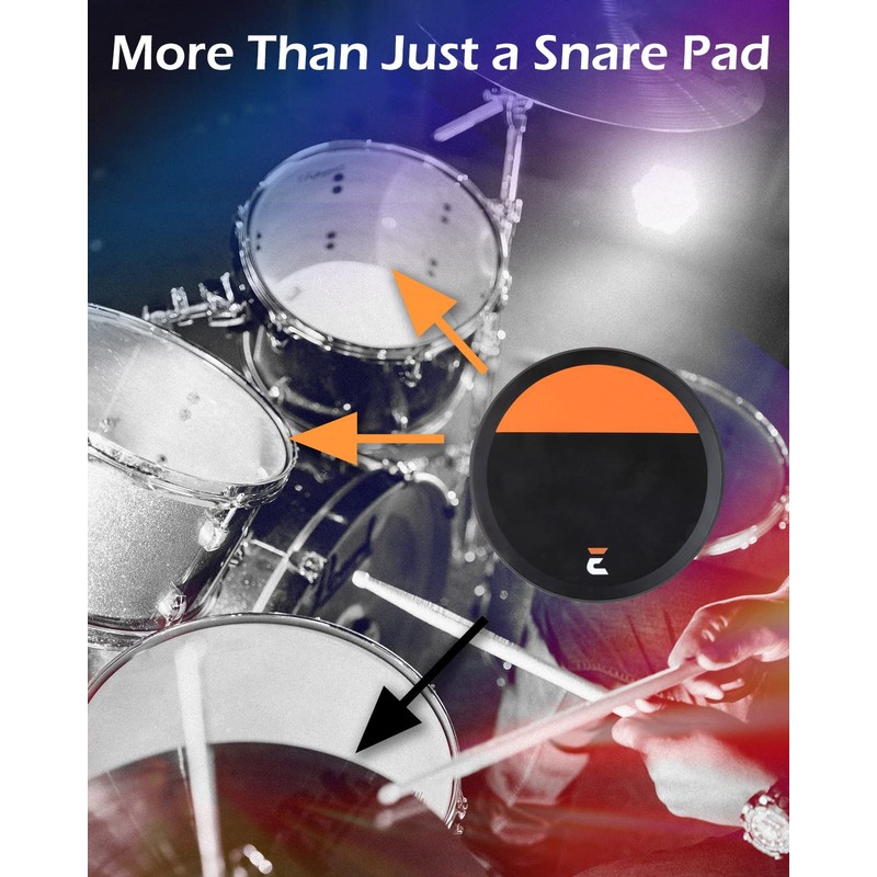 - Great Elasticity - It is the ultimate training tool for drummers of all skill levels. Measuring 11.4 inches in diameter and weighing only 3.3 lbs, this portable and durable pad is made of high-density compressed wood and flexible gum-rubber. The orange side offers a stiffer response, simulating the feel of a tom drum, while the black side offers a normal response, simulating the feel of a snare drum. This versatile design allows you to train your hands accurately.