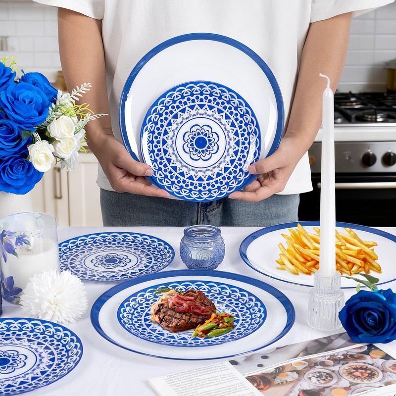 - Artistic Value Pack:Blue floral plastic plate set includes 30pcs 10.25inch dinner plates and 30pcs 7.5inch dessert/salad plates,which are sufficient to meet your daily gathering and party needs.The design is convenient for neat stacking and keeps your cabinets tidy.