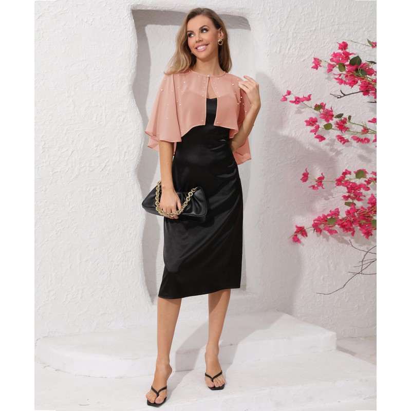 - Chic Pearl Embellishments:Adorned with scattered imitation pearls, the cape shimmers like starry skies. These delicate details elevate the design, turning simple outfits into glamorous looks fit for special occasions.