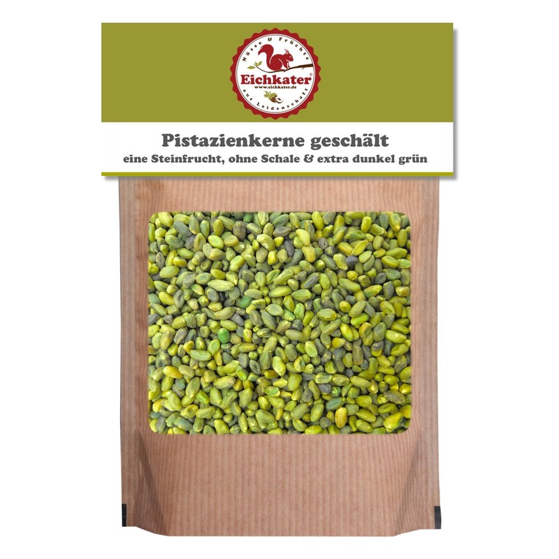 - Pistachio kernels natural, peeled, not roasted and not salted - a stone fruit, without shell and extra dark green from Eichkater