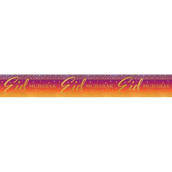 Eid Mubarak Banner Ramadan Bunting Banner for Eid Mubarak Festival Party Decoration Recyclable Orange