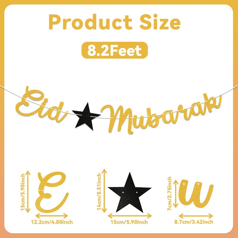 - PACKAGE: Gold glitter Eid Mubarak banner with rope to hang
