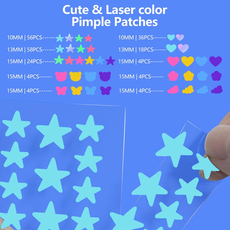 Have some fun with acne care - our pimple patches stars designs come in whimsical shapes like stars, adding a touch of personality to the pimple healing process. Playful and pragmatic, these blemish patches make it more enjoyable.