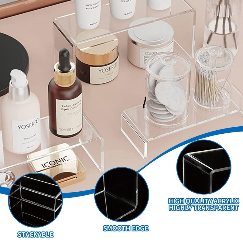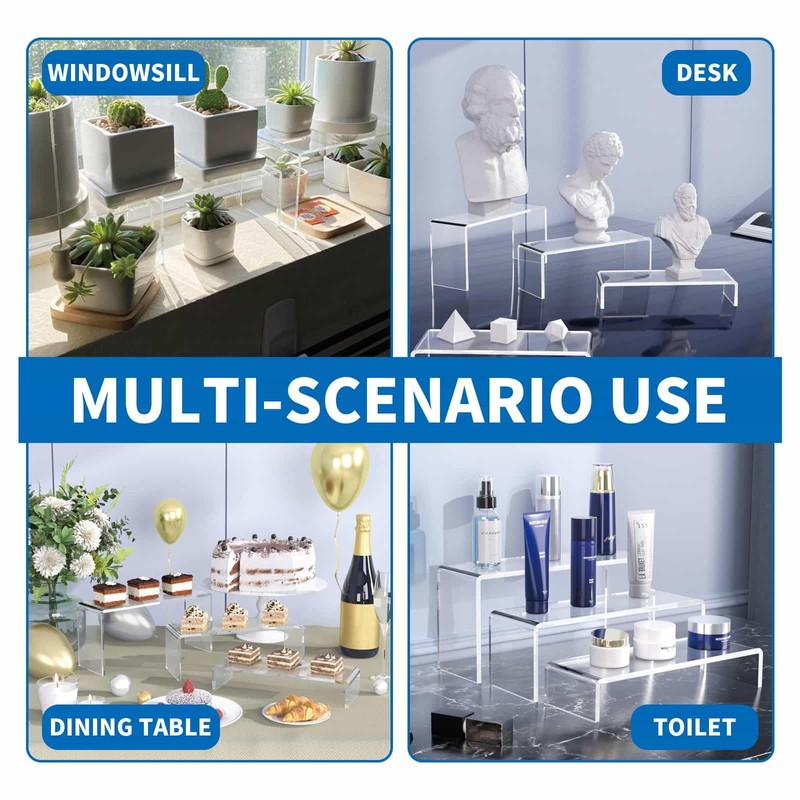 - 【TABLETOP DISPLAY RISER】 - Our clear and transparent acrylic stands blend in perfectly with the décor of any home, event, or business, and are suitable for displaying crafts, trophies, artwork, collectibles, candy, dolls, action figures, shot glasses, succulents, small craft projects, retail products, cupcakes, desserts, and jewelry, among others.