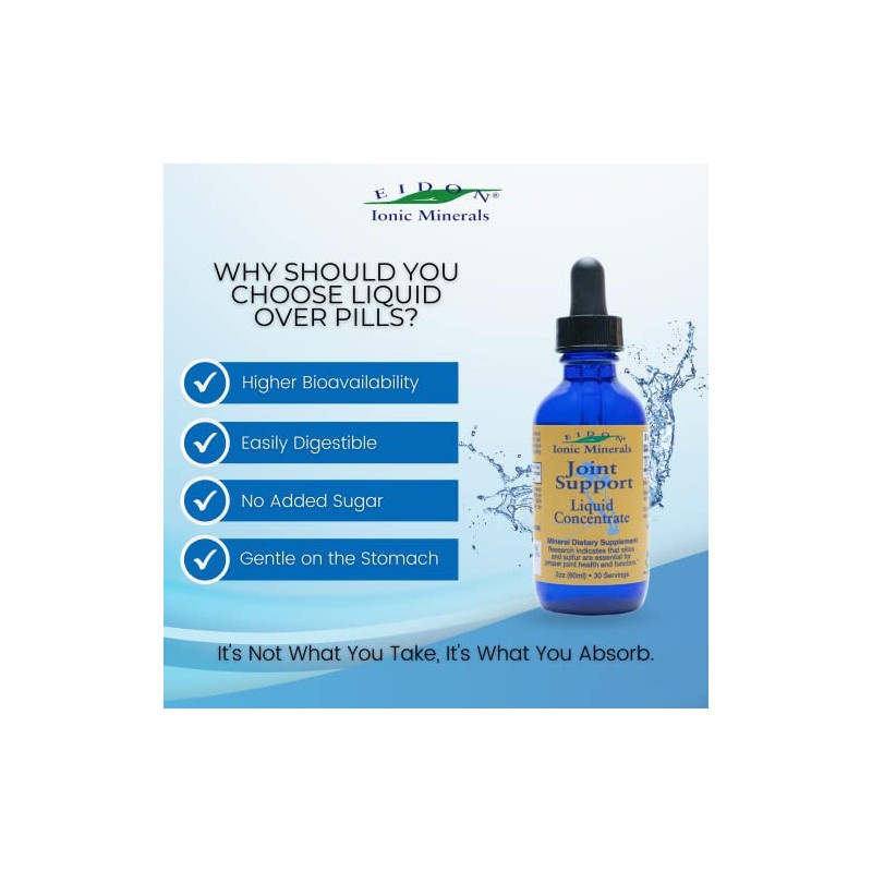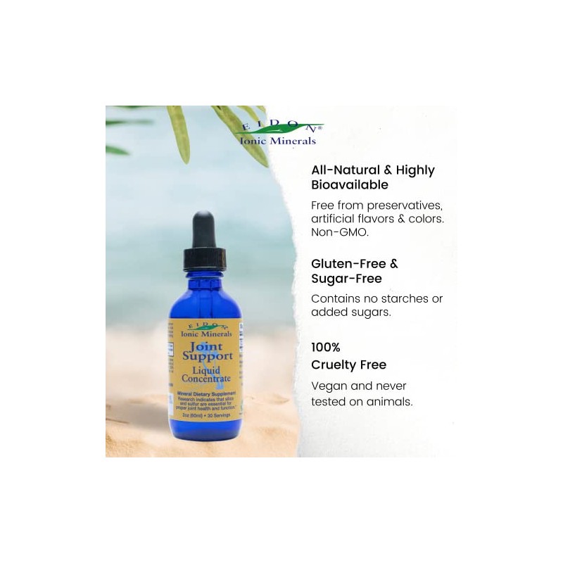 Eidon Joint Supplement Liquid Concentrate - Contains Silica and Sulfate, All-Natural, Bioavailable, Ionic, Vegan, No Additives or Preservatives - Joint Supplement Liquid, 2 Ounce Bottle