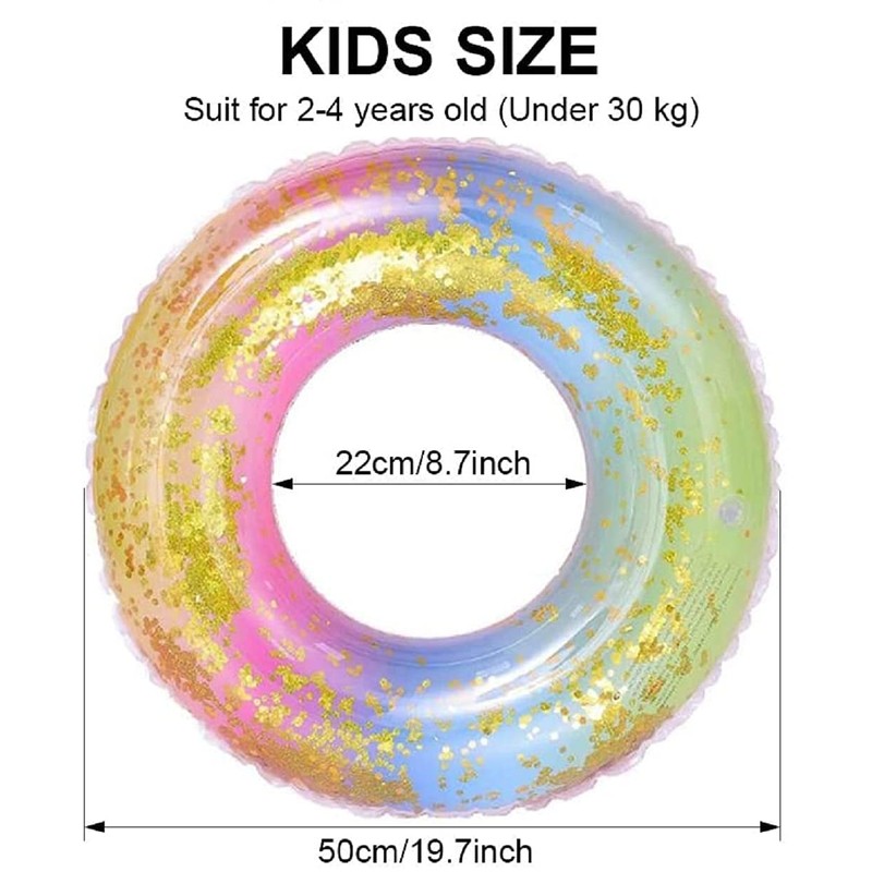 Eidyer Transparent Floating Ring Rainbow Sequins Swim Ring, Durable Inflatable Pool Floats, Swimming Rings for Summer Pool Party for Kids (Kids(2-4 Years))