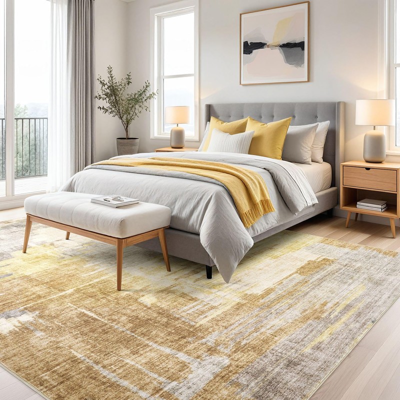 EIEIHOUSE Area Rug 8x10 Living Room Rugs,Soft Washable Rug Low Pile Carpet, Non-Slip Abstract Modern Rug for Bedroom Dining Room Nursery Home Office- Yellow/Grey/Gold