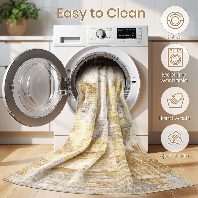 - Washable and Easy to Care Area Rug: Crafted with a low pile design, our stain resistant and tumble rugs washable traps dirt on its surface for cleaning. A quick wipe, sweep, or even a machine wash (6x9 and up suitable for large machines) keeps the washable area rug looking fresh and clean