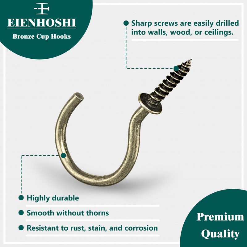 EIENHOSHI EIENHOSHI 105 Pcs Screw Hooks, 6 Sizes Bronze Cup Hooks, Screw Hooks for Hanging, Metal Cup Hooks Screw in (1/2", 5/8", 3/4", 7/8", 1'', 1-1/4")
