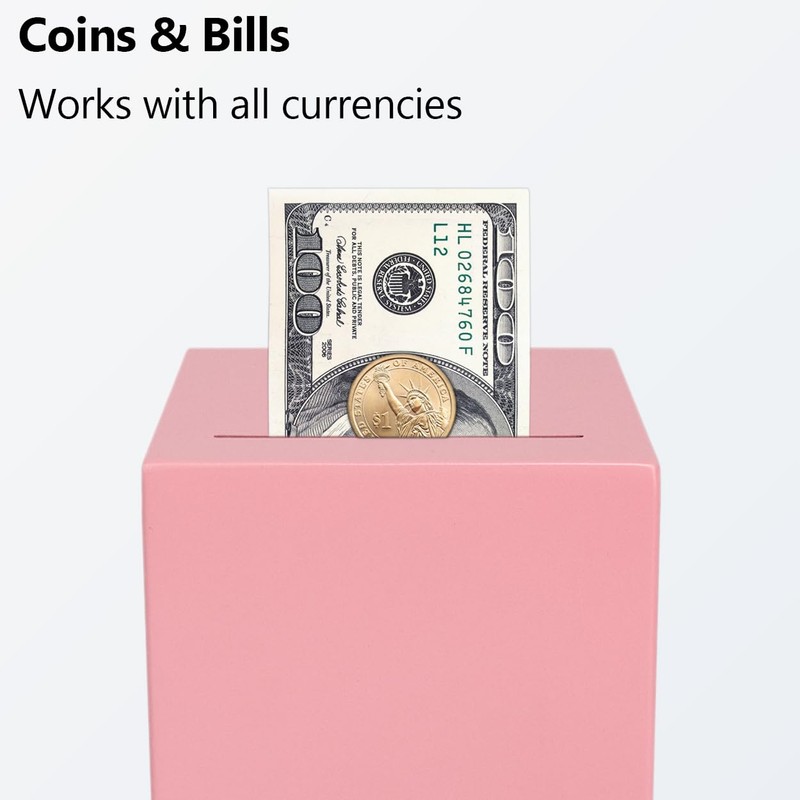 - 【Optimal Size for Savings】 Measuring 4.92x6.5x3.94 inches, this small money bank offers ample space to store cash and coins for various saving goals. It fits easily on desks, shelves, or bedside tables, ensuring convenience without occupying excessive space