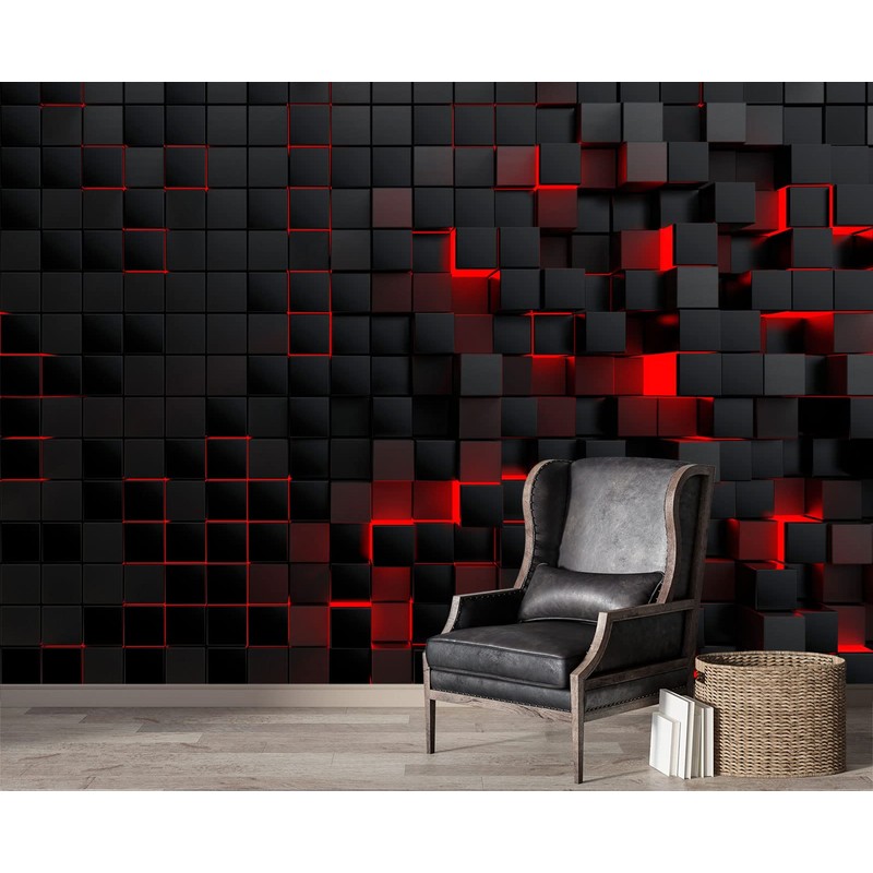 Eierme Tech Red Blocks Wall Mural Wallpaper for Bedroom 103" x 69"