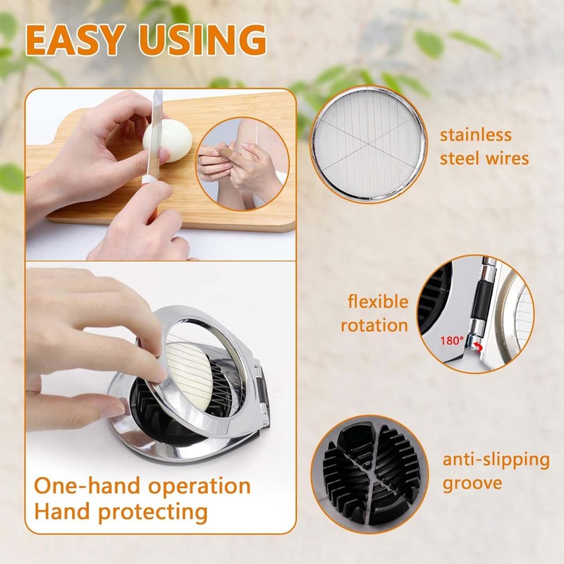- 【Mehrfachverwendung】Mit dem Eierschneider können Sie nicht nur Eier schneiden, sondern auch weiche Lebensmittel wie Kiwi, Banane, Erdbeere, Butter, Käse usw. schneiden.