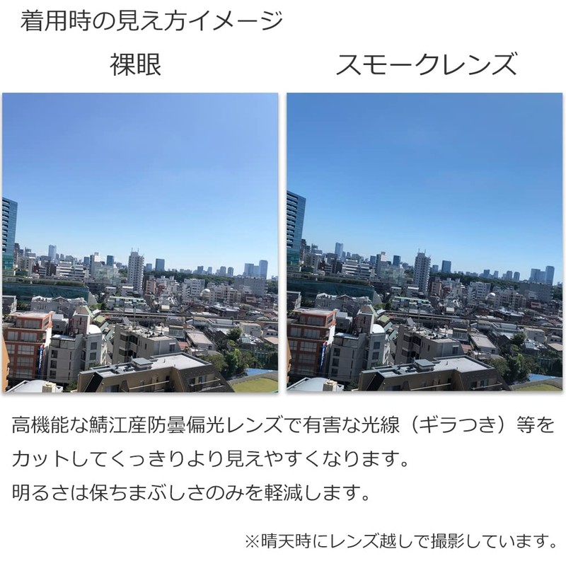 - Polarized lenses made in Sabae with anti-fog treatment for good visibility. No fogging even with a mask. ■ Recommended polarized sunglasses for sports and fishing such as driving, golf, etc. ■ UV protection rate 99.9% blue light cut rate 65% polarization rate 99% visible light transmission 34%