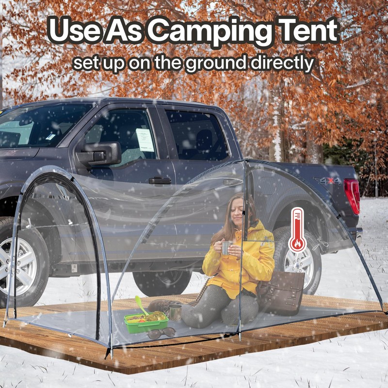 EighteenTek Truck Tent 2 Person Camper Shell Pop Up Automatic Setup - Cold Resistant Transparent PVC - Waterproof PU2000mm Double Layer Rainfly Adjustable 5 5.5 6 6.5 8 ft - Bed Pickup Camping Tent