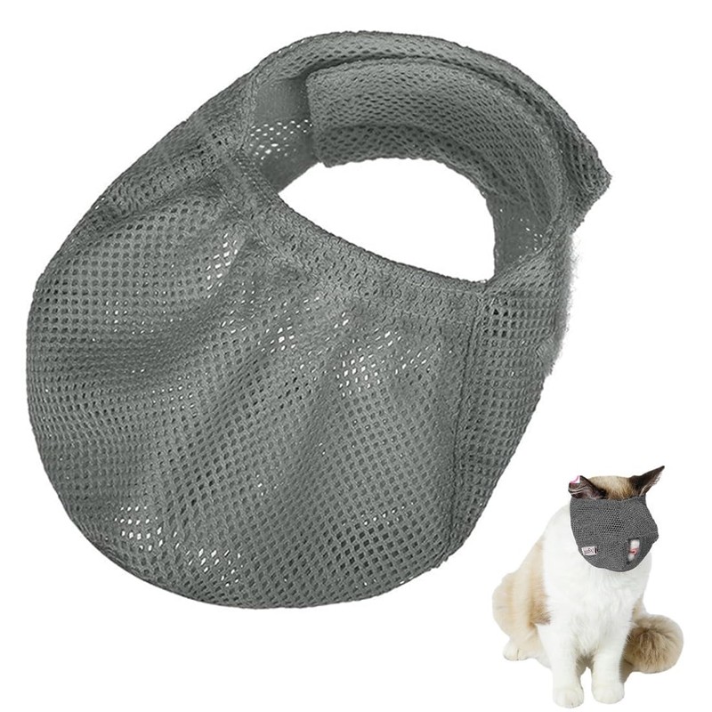 EIHI 1 x Cat Muzzle with Breathable Mesh, Muzzle for Cats Prevent Biting Chewing Cat Care (S, Grey), black