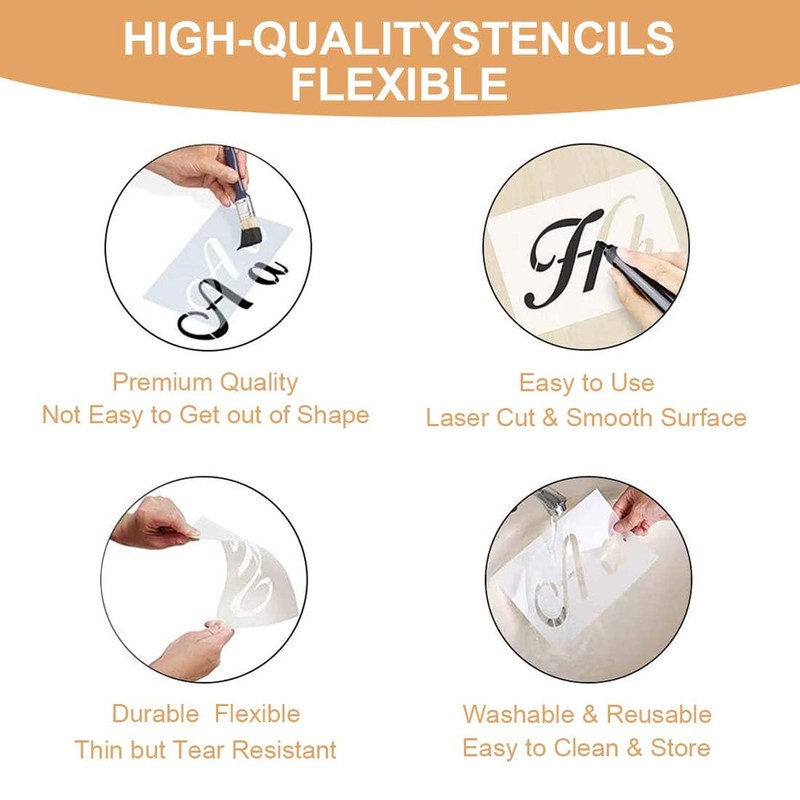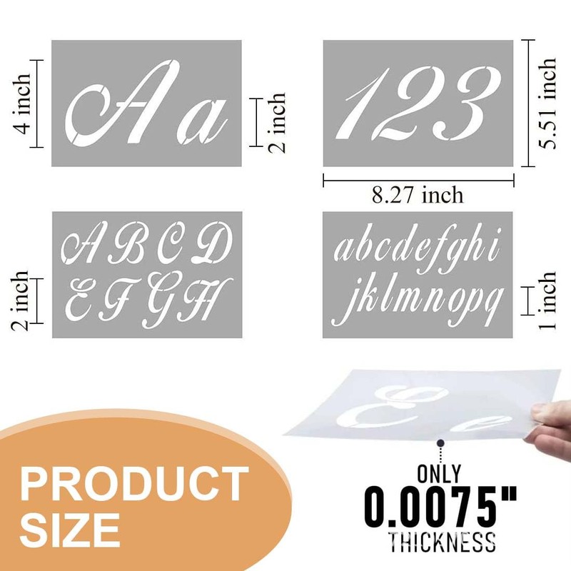 ⭐ COMPLETE SET The set includes 2 complete alphabet sets with uppercase and lowercase letters, numbers and common symbols. The package contains a total of 40 stencils, making this large stencil set a great value!