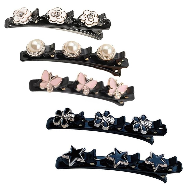 EIHI Pack of 5 Hair Clips with 3 Clips Hummingbird Hair Clip with Crystal Flower Braided Hair Clip for Women Girls Fashionable Double Layer Hair Clip Duck Beak Hair Clip