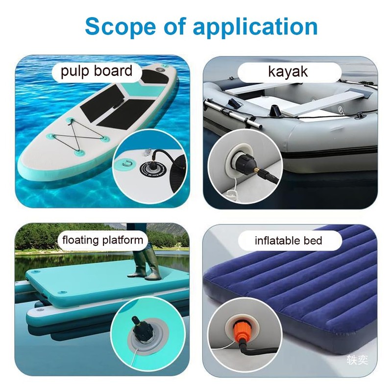 SUP valve adapters are commonly used in various paddle boards, canoes, kayaks, inflatable boats, inflatable boats, pontoons, inflatable boats, kayaks, etc.
