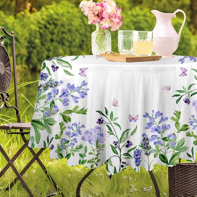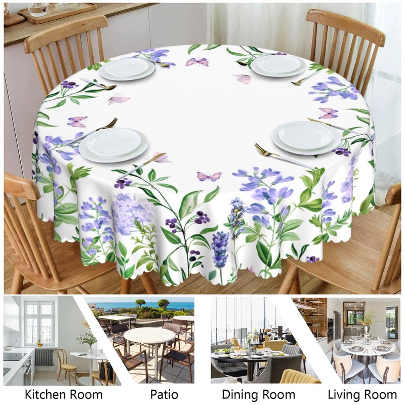 Eikione Lavender Round Tablecloth 60 Inch, Floral Oilproof, Wrinkle Resistant Fabric Flower Table Cover for Patio Party