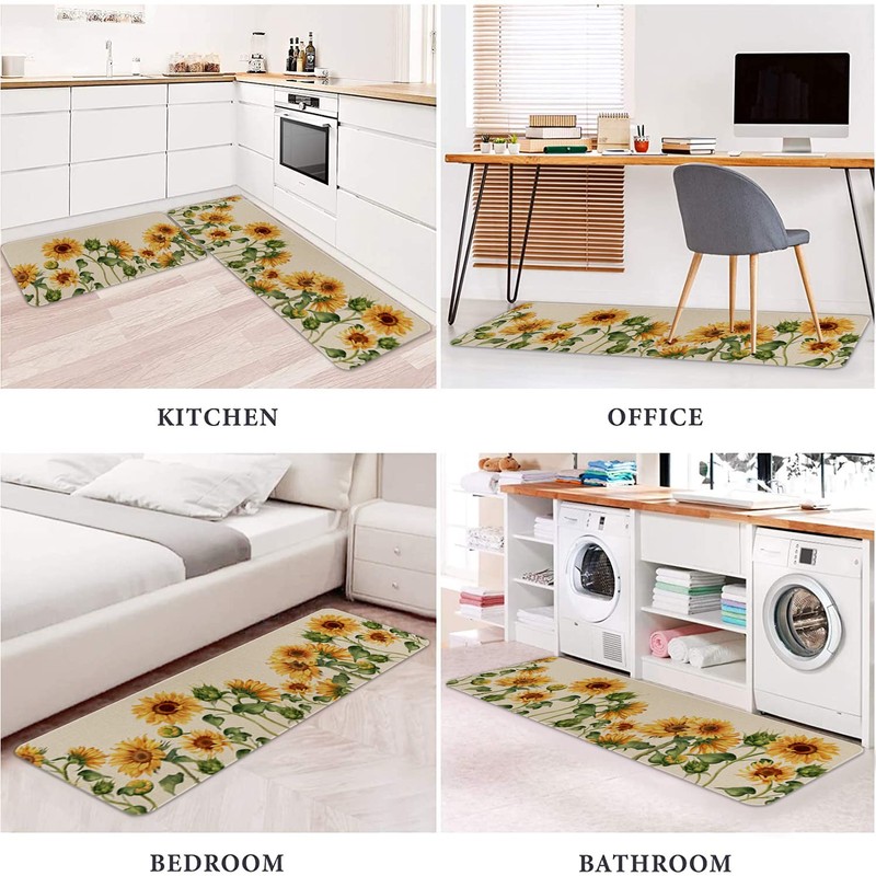 - 【Premium Material】The sunflower kitchen rug is made of 100% linen that is low-profile and backed with non-slip recycled rubbe. The premium material is very eco-friendly,durable,not easy to get stain, non-slip, and absorb water.