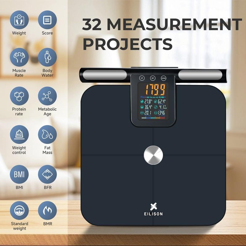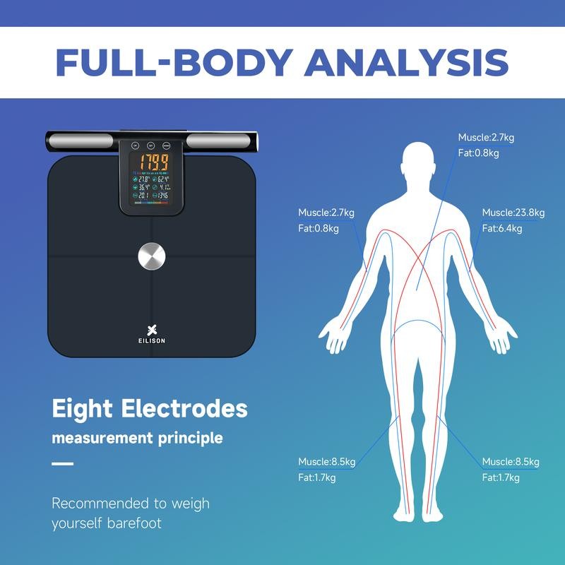 EILISON Smart Scale for Body Weight: 8-Electrode Precision Digital Bathroom Scale for Fat BMI 32 Muscle Body Composition Analyzer, Highly Accurate Weighing Machine, 400lbs (8 Electrode Grey Handle):_grey