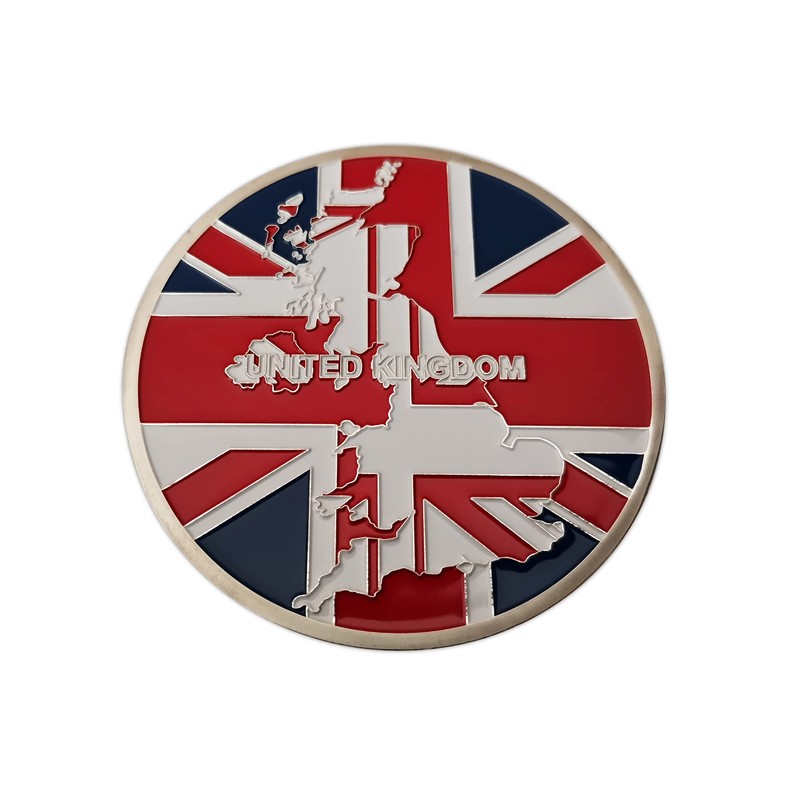 - ♦The back side of the coin displays United Kingdom in their colors