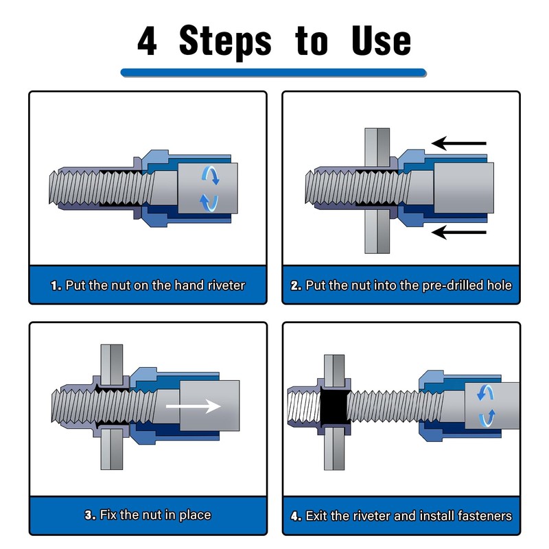 • 【Multi-purpose】: This rivnut assortment kit can be used to fix a variety of different materials, including iron, steel, aluminum alloy and plastic, etc.